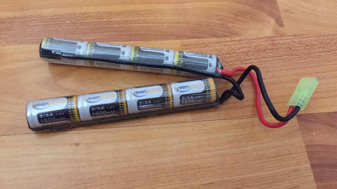 - π[BATTERY TYPE] 2/3Ax 8 cells 9.6V 1600mAh 15.36Wh 10C Type NiMH Nunchuck Battery Pack in Series, ideal replacement batteries for your Airsoft Stock equipment