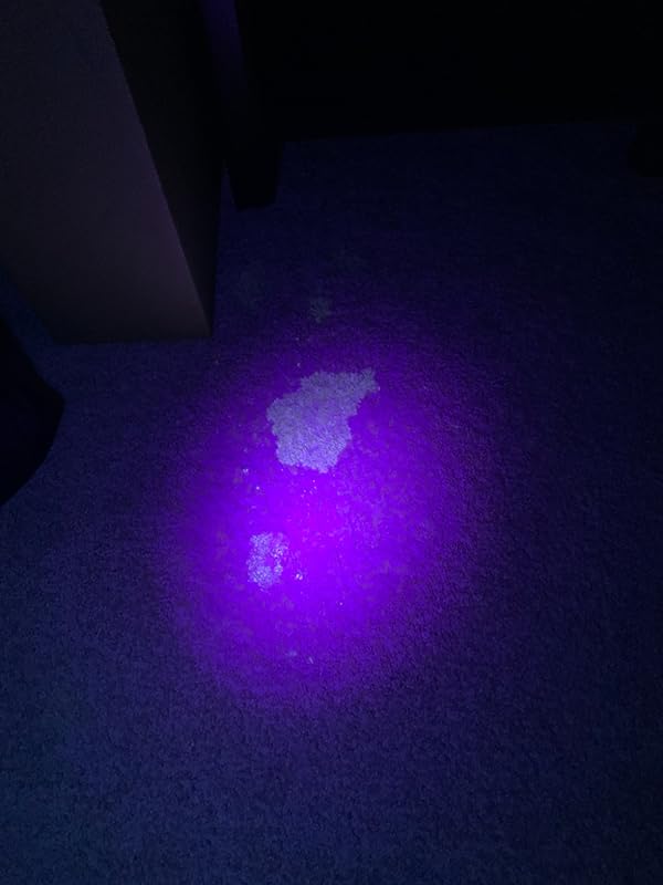 I bought this to find spots where my elderly dog has accidents that I might not catch in the moment. When I first received it, I looked through my living room and didn’t see any spots. Later, I caught her as she had an accident and grabbed this light and it didn’t illuminate the urine spot on the carpet that had literally just happened!
